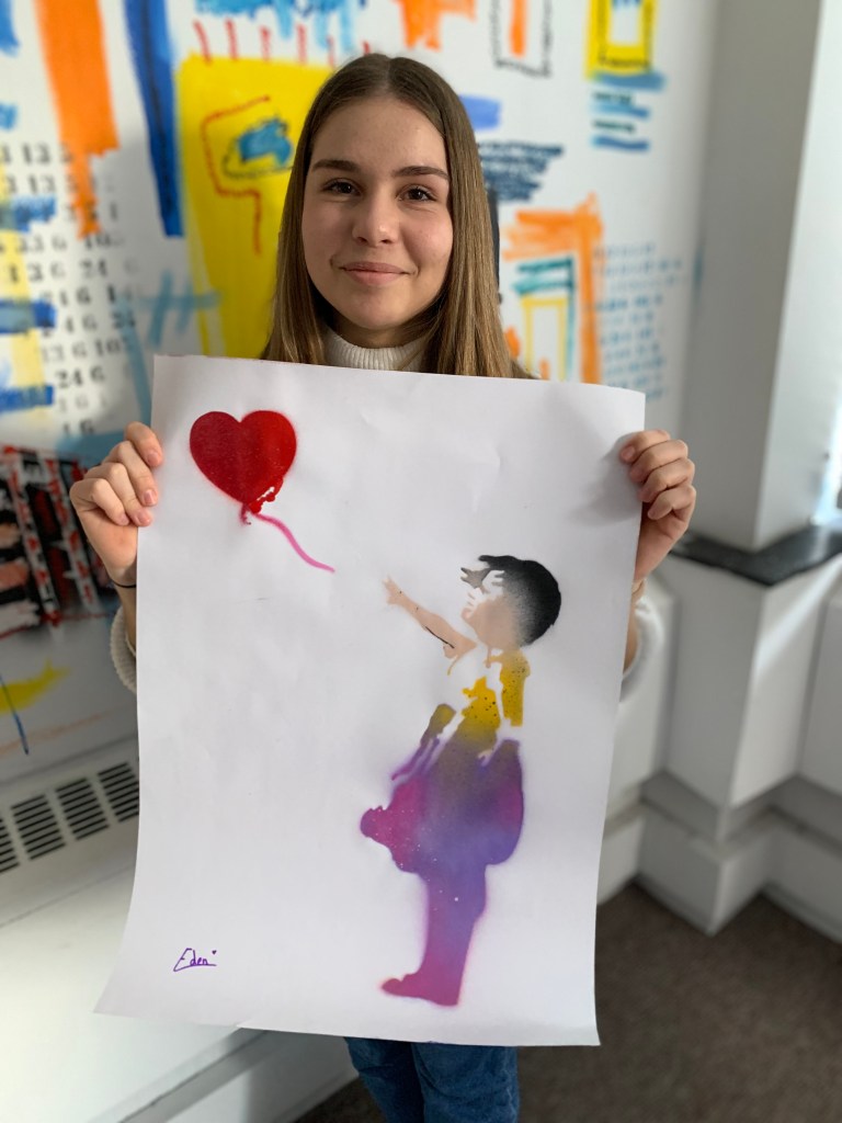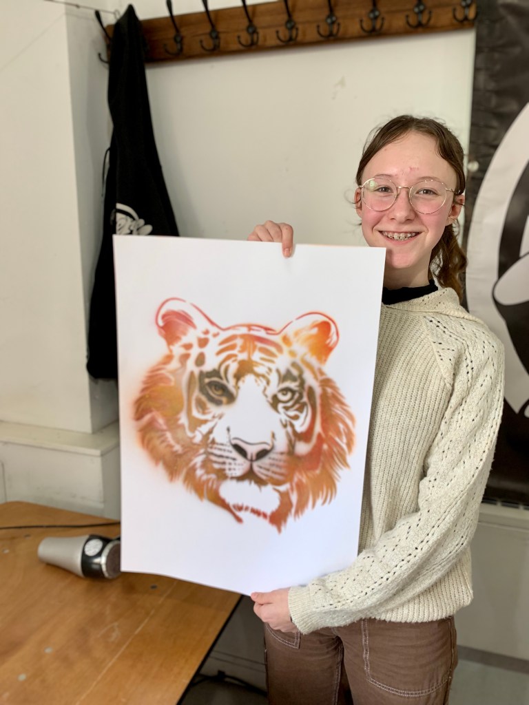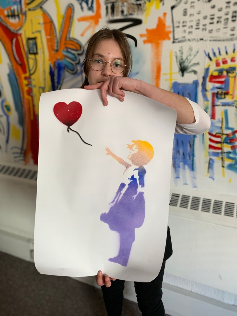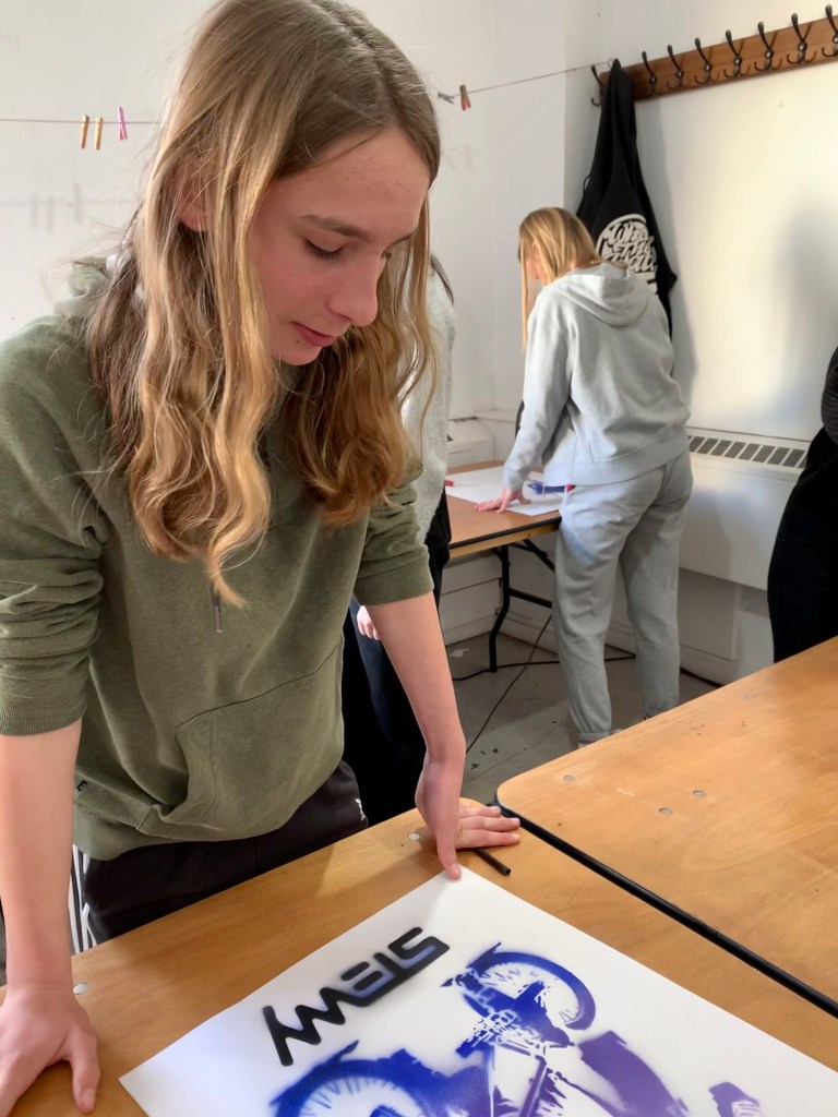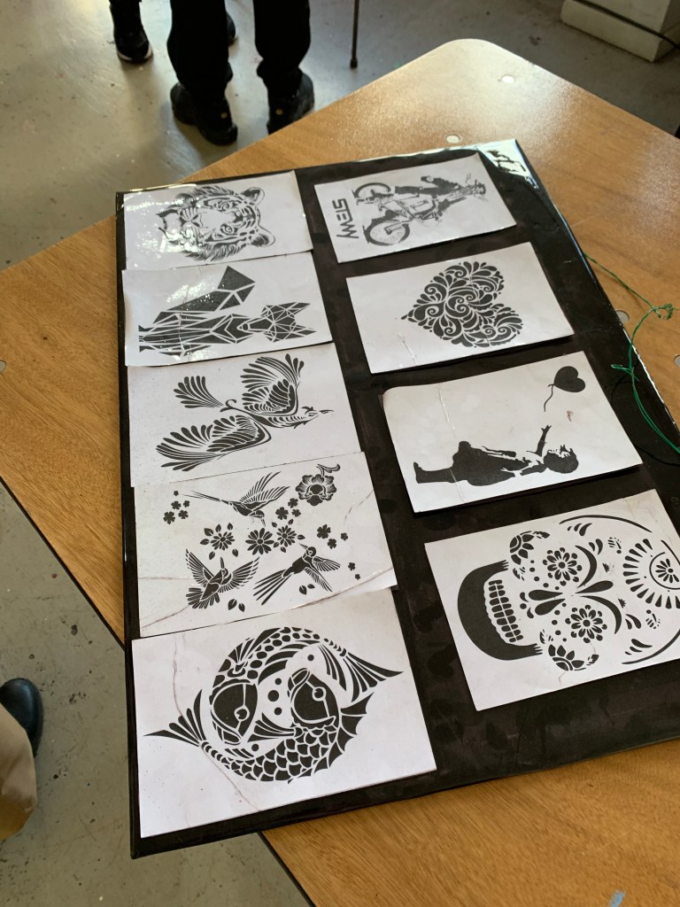 Then we went to create some street art of our own with a workshop on stencil art and a creative street art writing activity.
