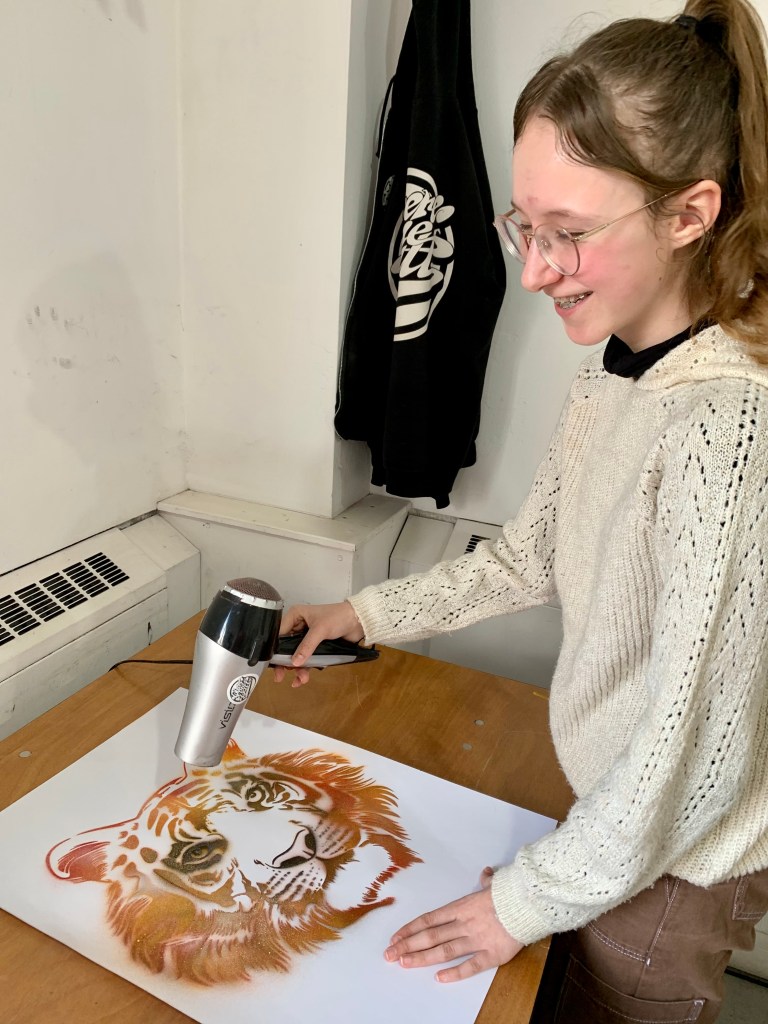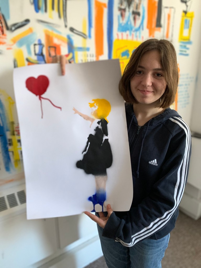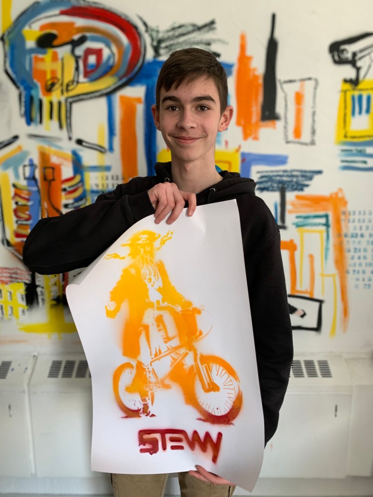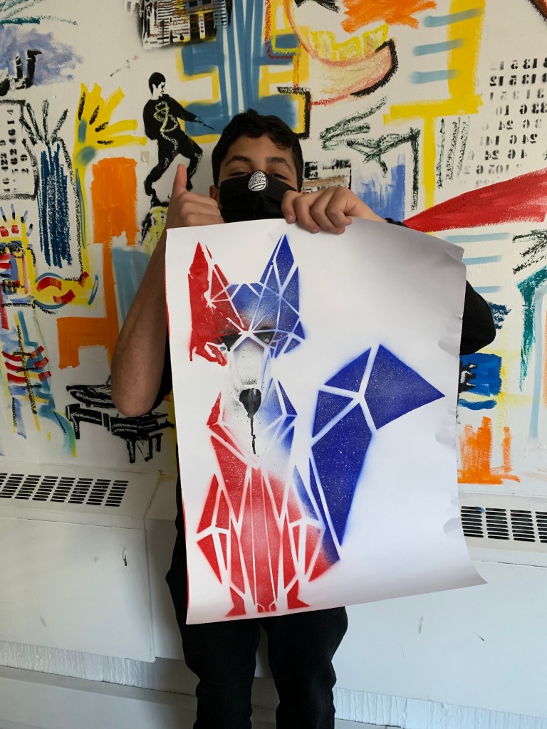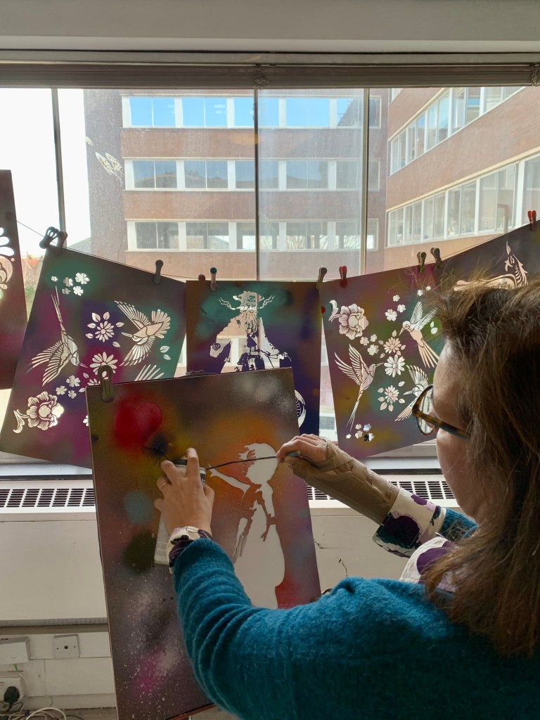 Then we went to create some street art of our own with a workshop on stencil art and a creative street art writing activity.