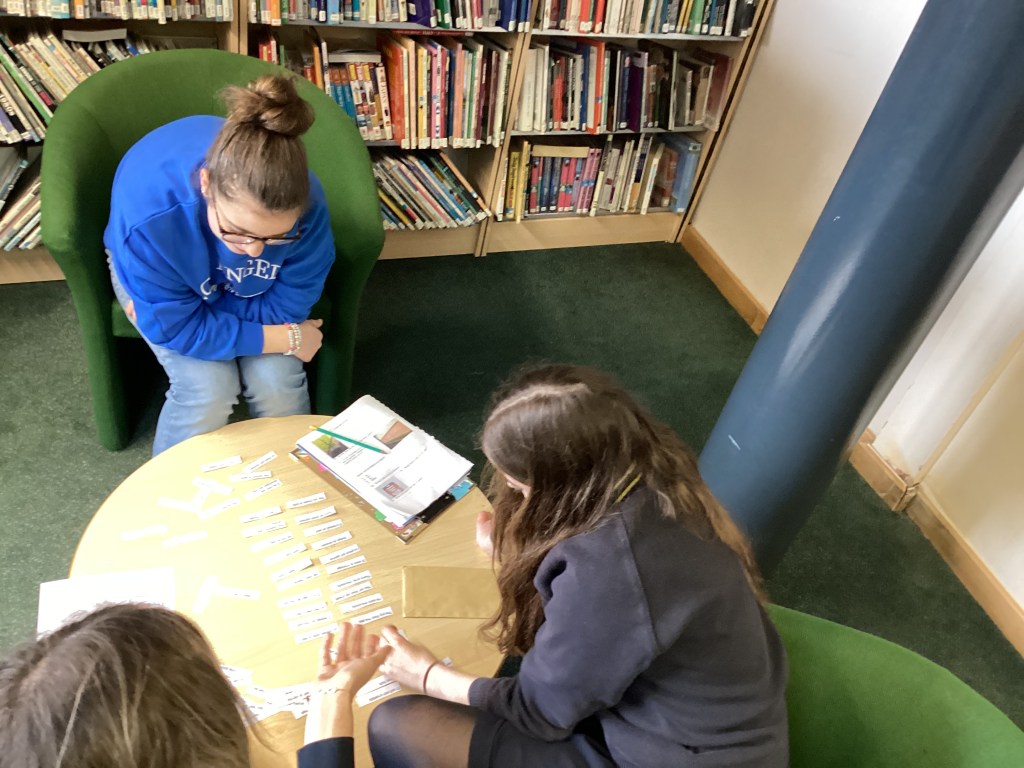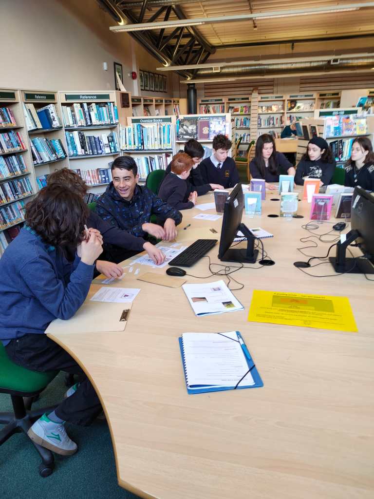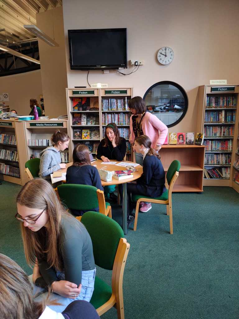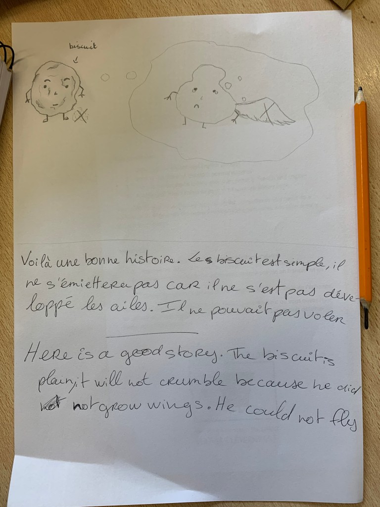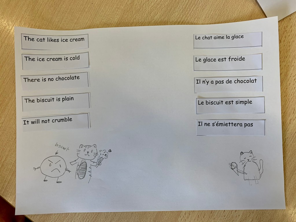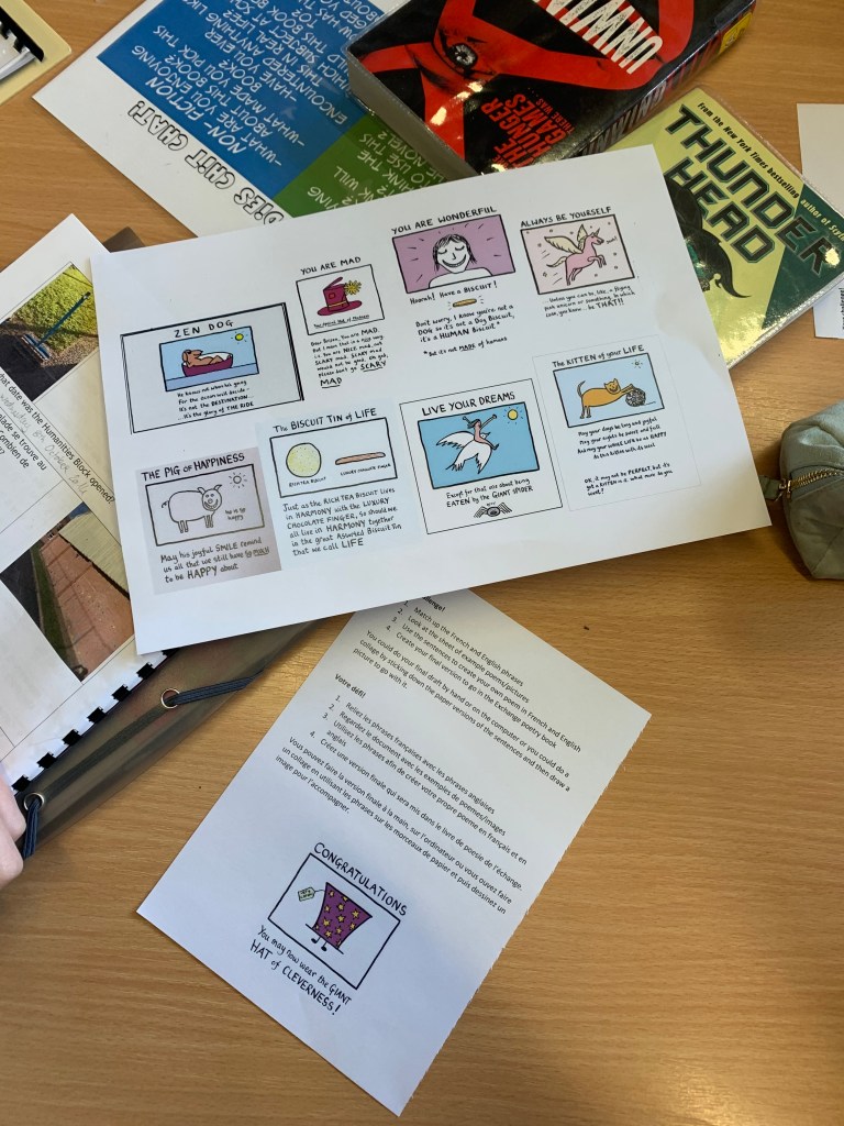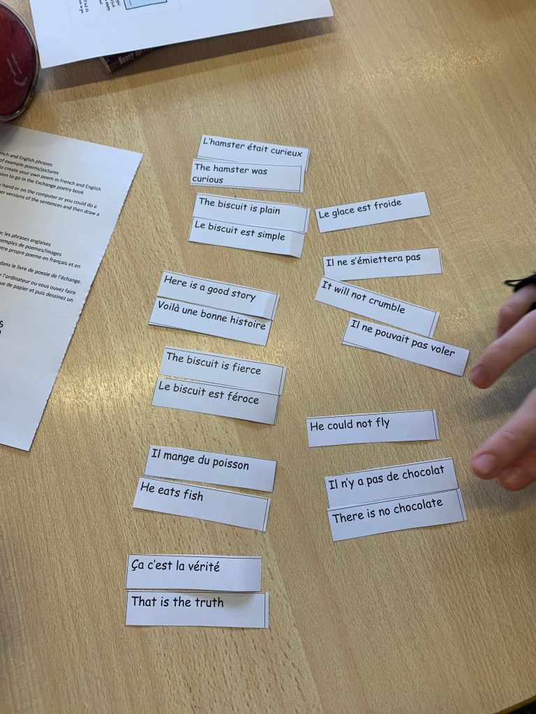 For lesson two we went to the school library to create poetry together. The work was done in English and in French and there was some serious artwork to illustrate the masterpieces.
