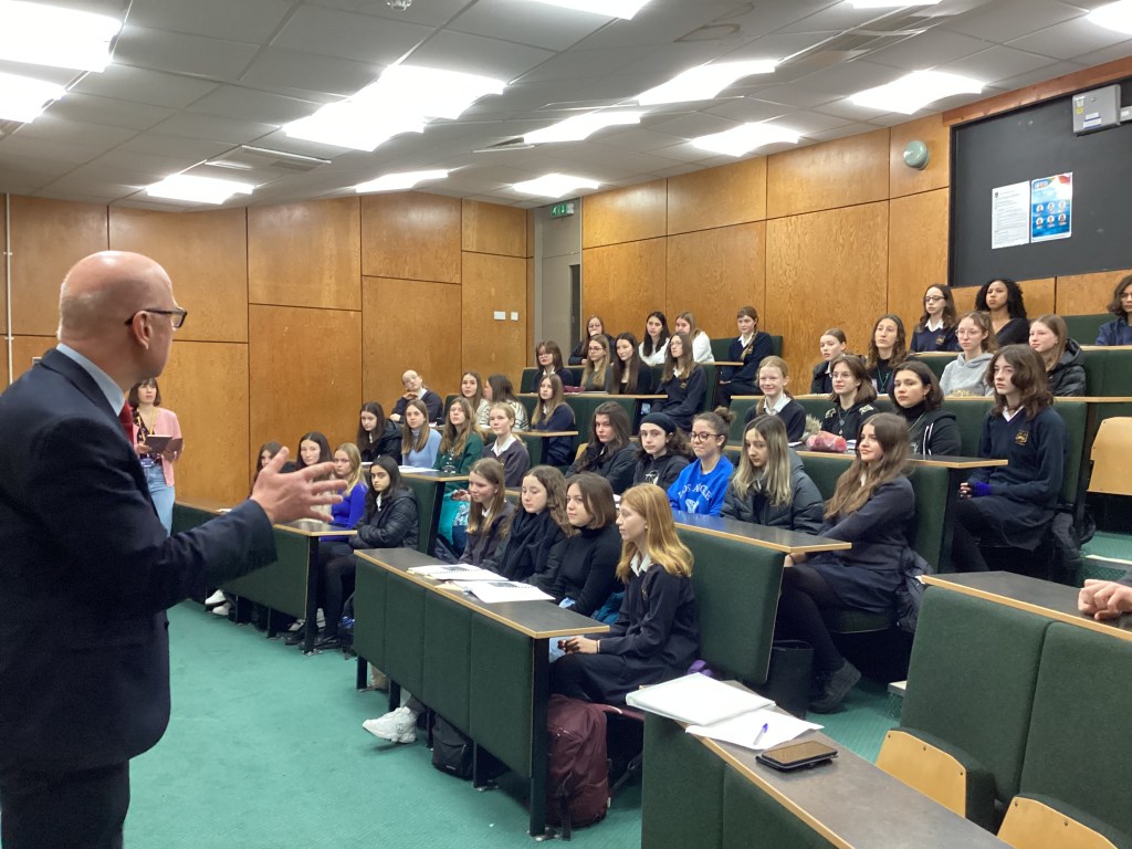 So, we started the morning in the Lecture Theatre with a warm welcome from Mike Fieldhouse, the school headteacher.