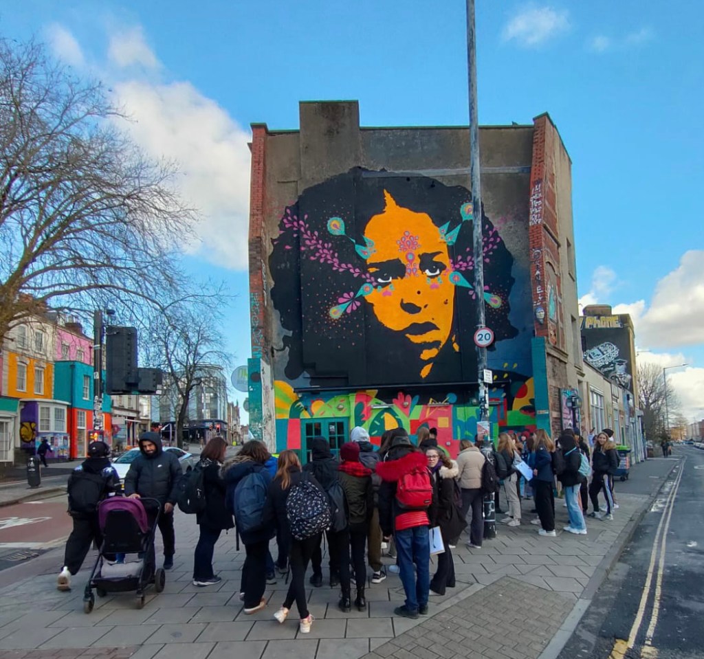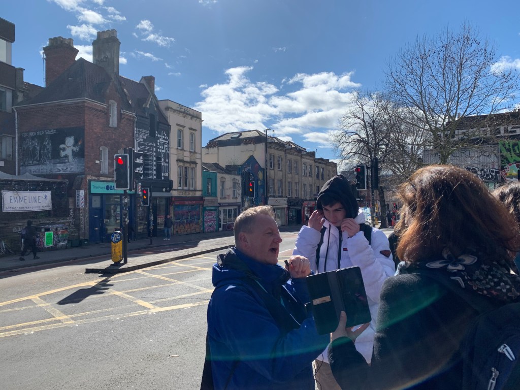 We started the day by meeting up with John, our guide from Where the Wall, for our tour of the Stokes Croft area of Bristol, the beating heart of the militant, activist street art in the city.