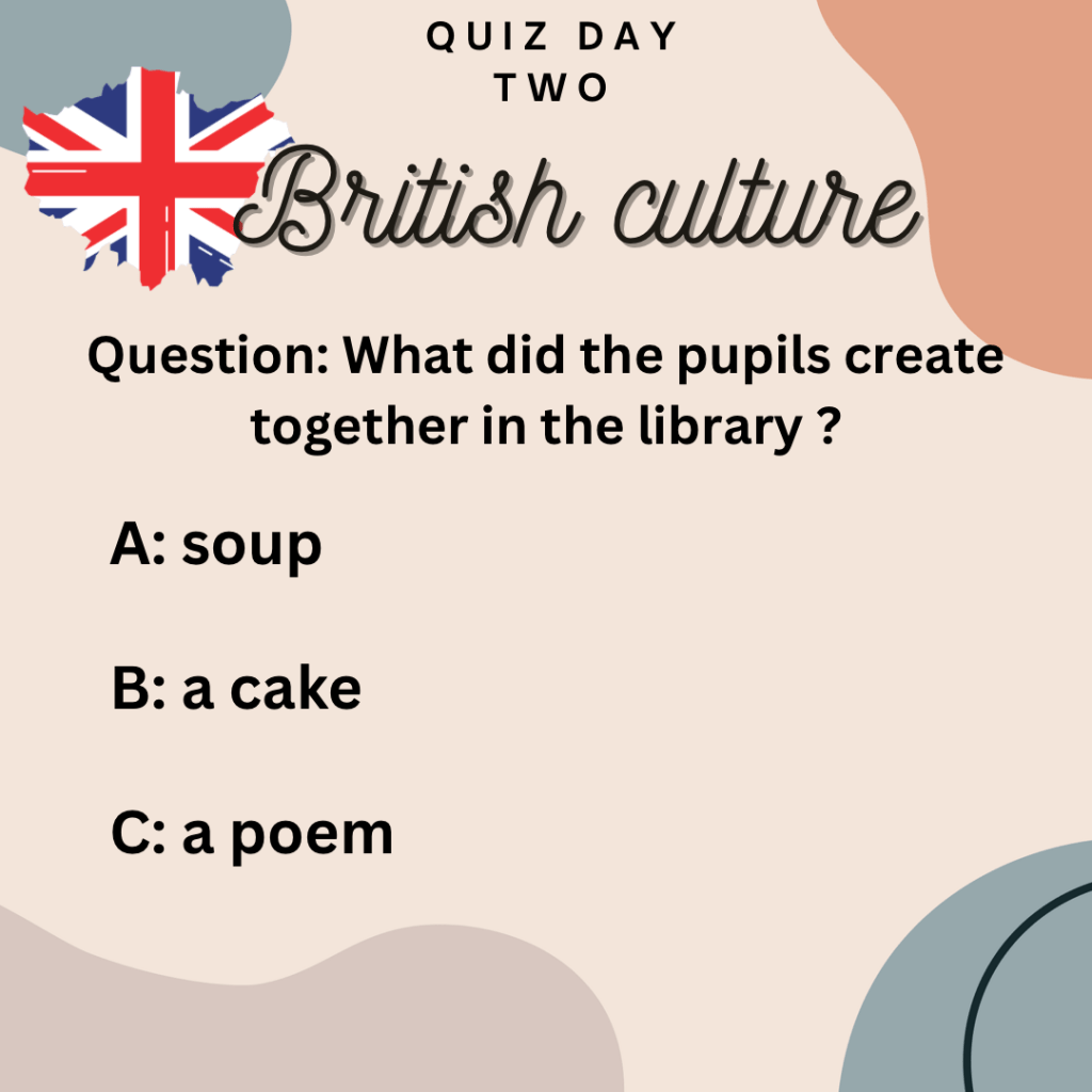 On Friday evening, all the host families were invited to come to the school’s main hall to eat together and take part in a quiz about French culture, in English, of course!