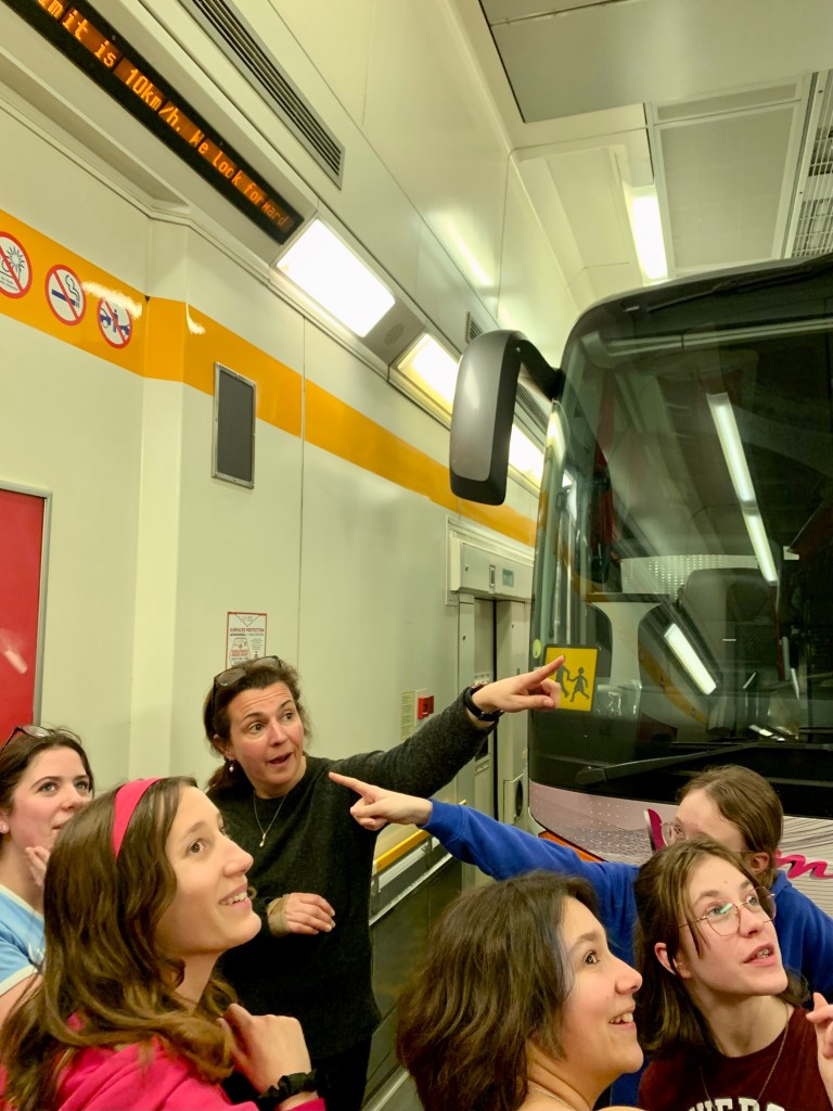 We got on the bus and drove for…5 minutes before turning round to go back to get Méline’s mobile phone that she had forgotten🫢.